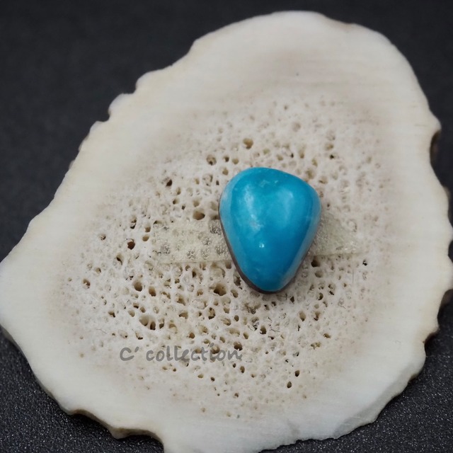 セリロス ターコイズ ルース CE-4 ニューメキシコ州 USA 大粒なオーバル型のルース。透明感のあるブルーグリーンと水晶、石英などの白からベージュの鉱物が混じり合う珍しいカラーのターコイズです。コレクションしたい鉱山の一つです。 19,2ct 26,58 x 15,97 x 5,75 mm(バッキング含) ルースケース付 画像6)窓際、太陽光で撮影 *セリロス(またはセリリョス )ターコイズは唯一火山の麓で形成されたターコイズで火山の石に含まれるミネラルによって様々なカラーが作り出されています。黄褐色〜カーキグリーン、ライトブルー〜ダークブルー まで70種類以上のカラーが認識されていて不思議なカラーもたくさんあります。一時期ニューヨークのティファニーが所有していたことでも有名な古く歴史ある鉱山です。 *ルースケースはサービスです。 *画像は実物に近く写るよう努力していますが、光の具合や背景、お手持ちのパソコン、携帯の画面等により少々違って見える事があります。