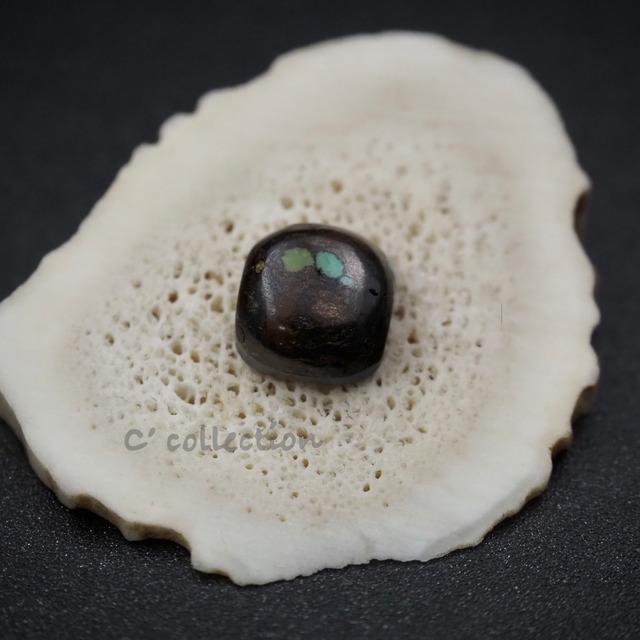 ハイグレード チャイニーズ クラウドマウンテン ターコイズ ルース CM-05 またはフーベイターコイズ 濃いブルーにブラックマトリックス。小さめのルース。深いブルーとブラックマトの高級感あるナチュラルルースです。 1,5 ct ナチュラル 7,3 x 7,2 x 3,5 mm(バッキング含) ルースケースに入れてお届けします。 画像5はiphoneで 曇天、窓際で撮影。 *画像は実物に近く写るよう努力していますが、光の具合や背景、お手持ちのパソコン、携帯の画面等により少々違って見える事があります。