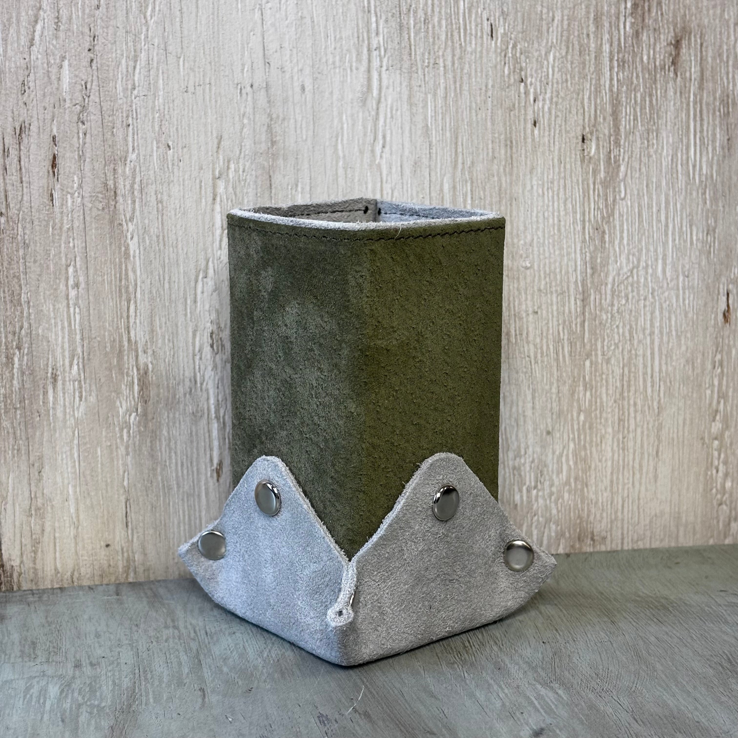 MS-5 本革メガネスタンド シングル OLxIV スエード & ベロア ペンスタンド ハンドメイド 多目的スタンド オリーブ まっちゃ