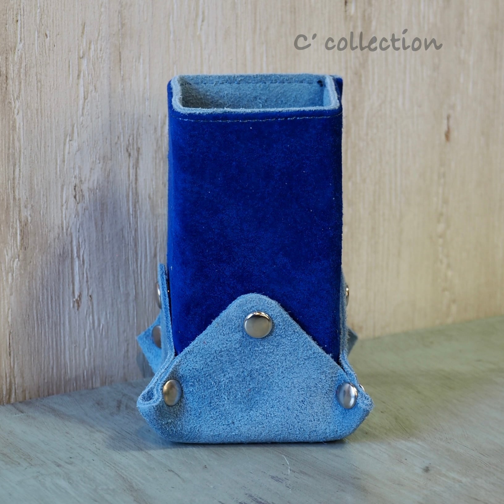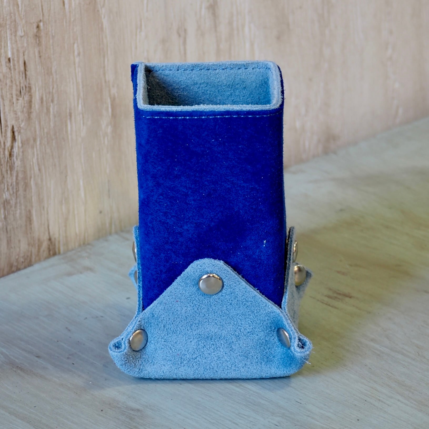 MS-10 本革メガネスタンド シングル BLxSX スエード & ベロア ペンスタンド 多目的 ハンドメイド ブルー