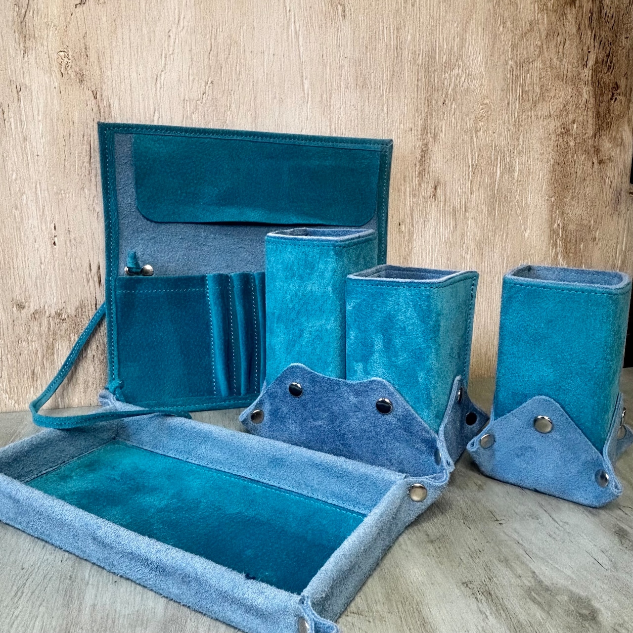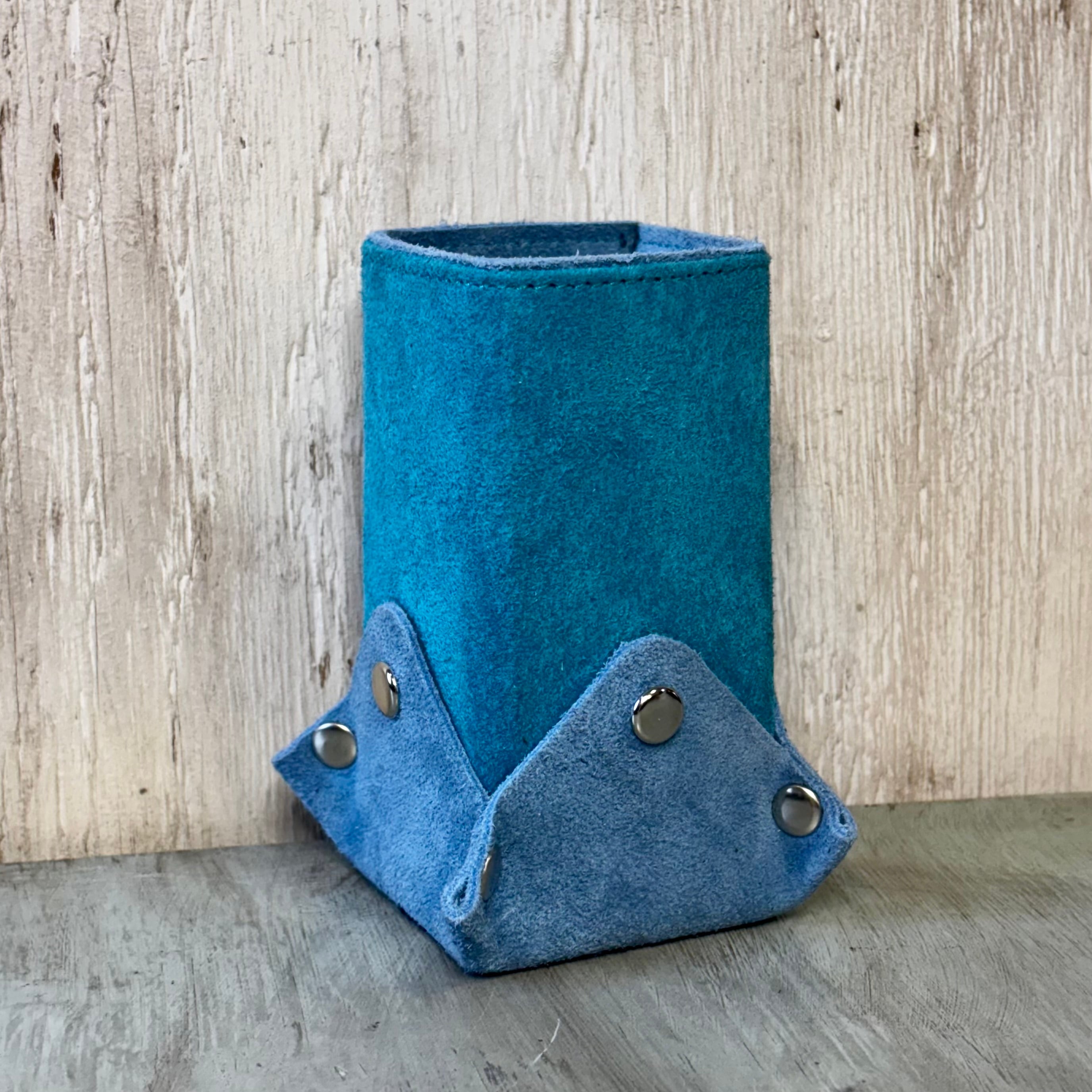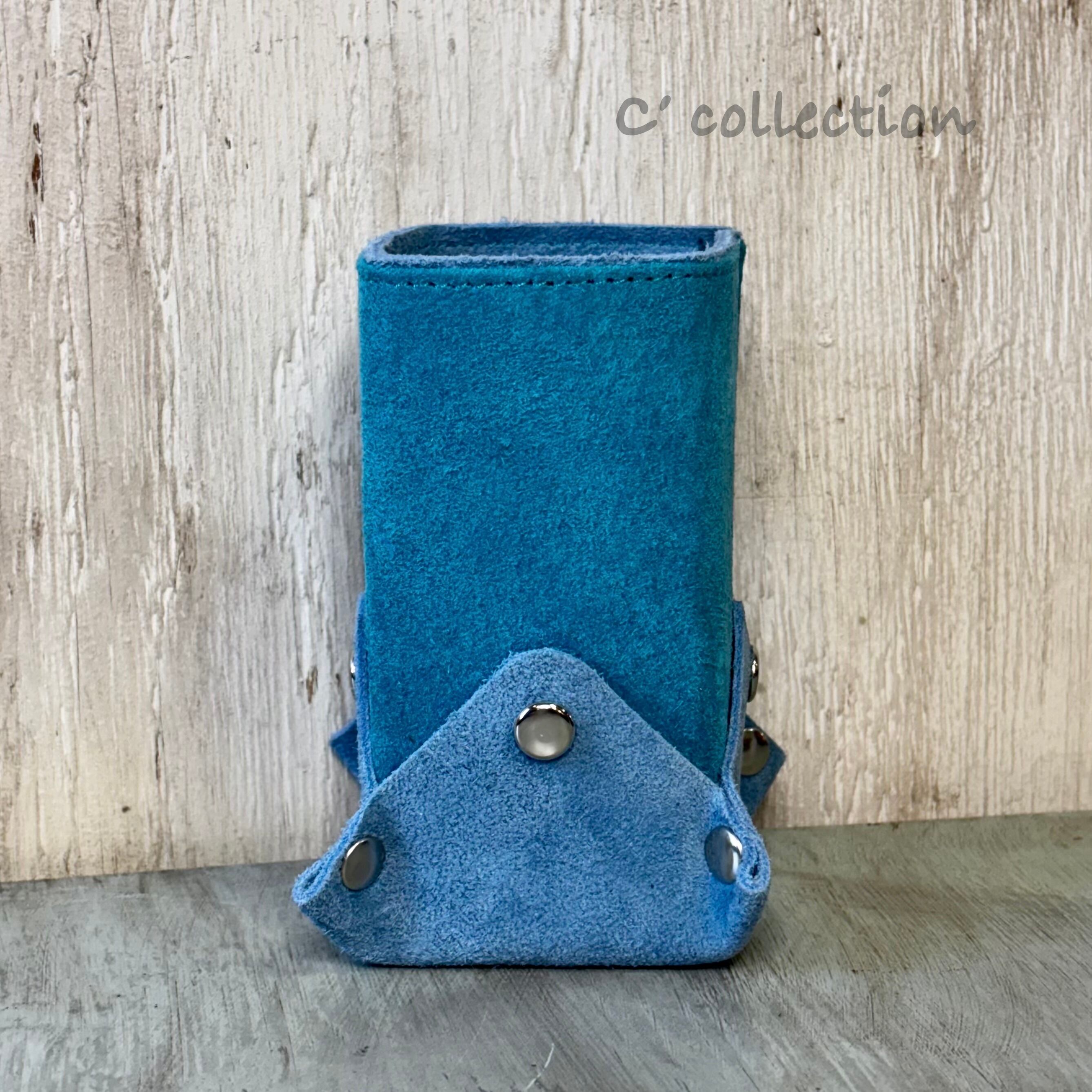 MS-6 本革メガネスタンド シングル SXxSX スエード & ベロア ペンスタンド 多目的 ハンドメイド サックス