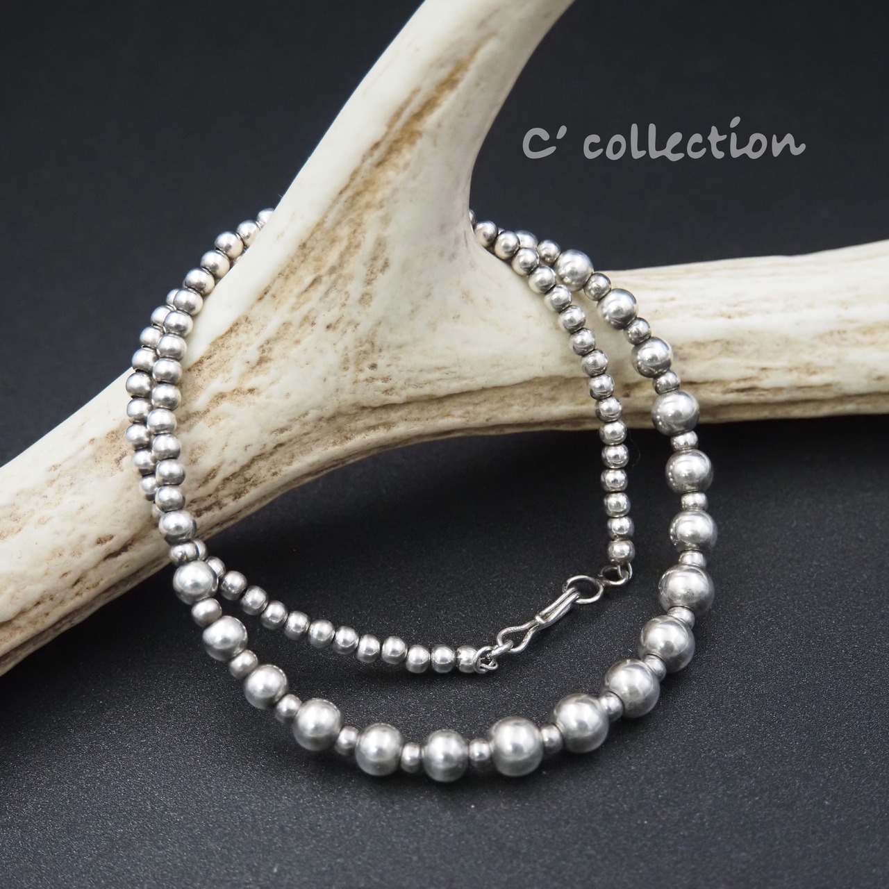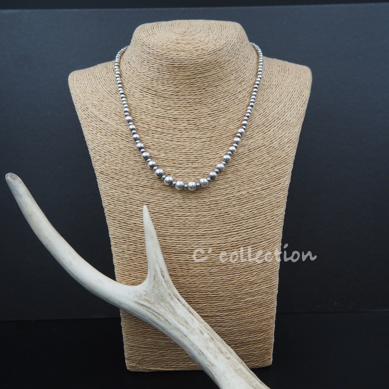 C2N-49 ナバホパール シルバービーズネックレス 45cm ラウンド グラデーション ハンドメイド