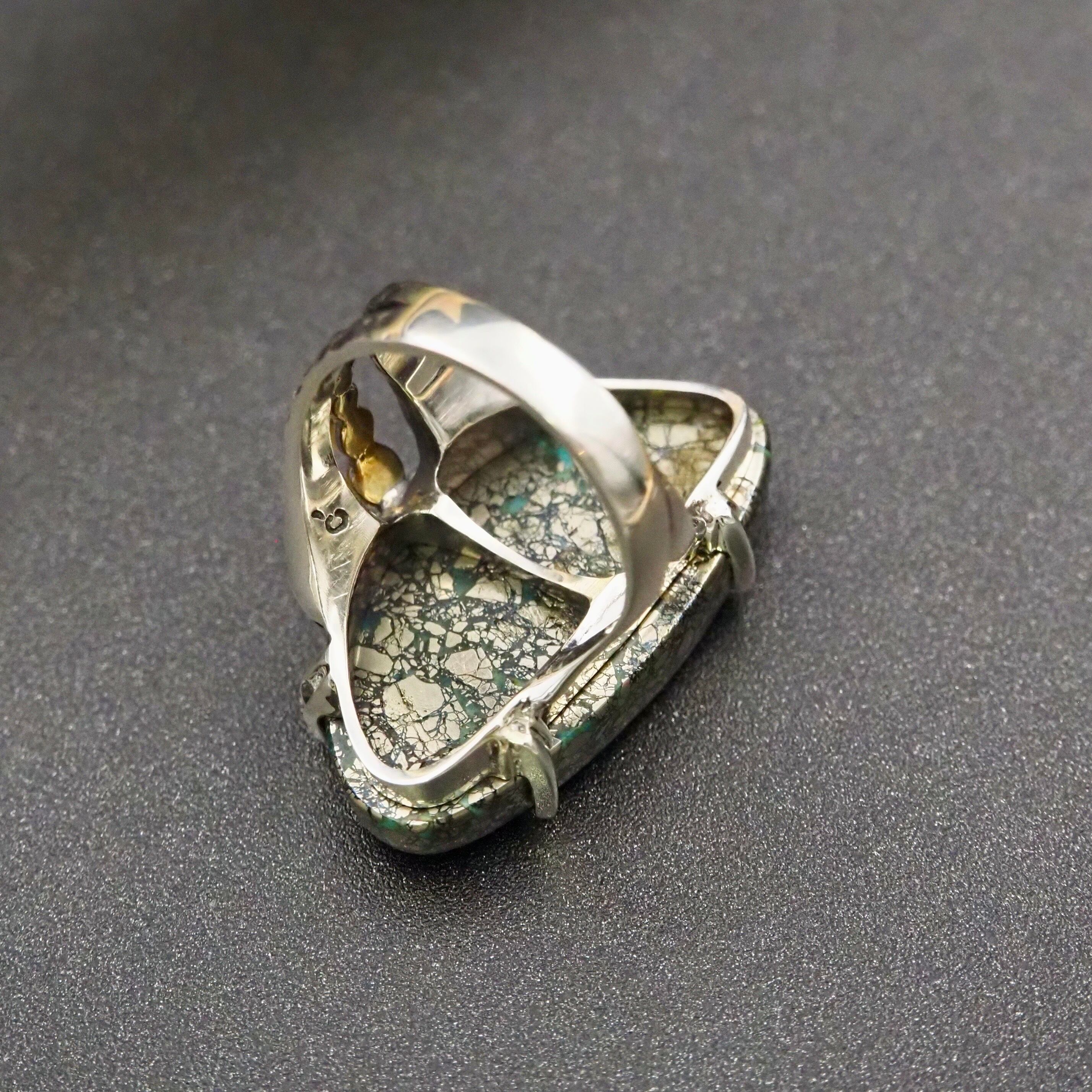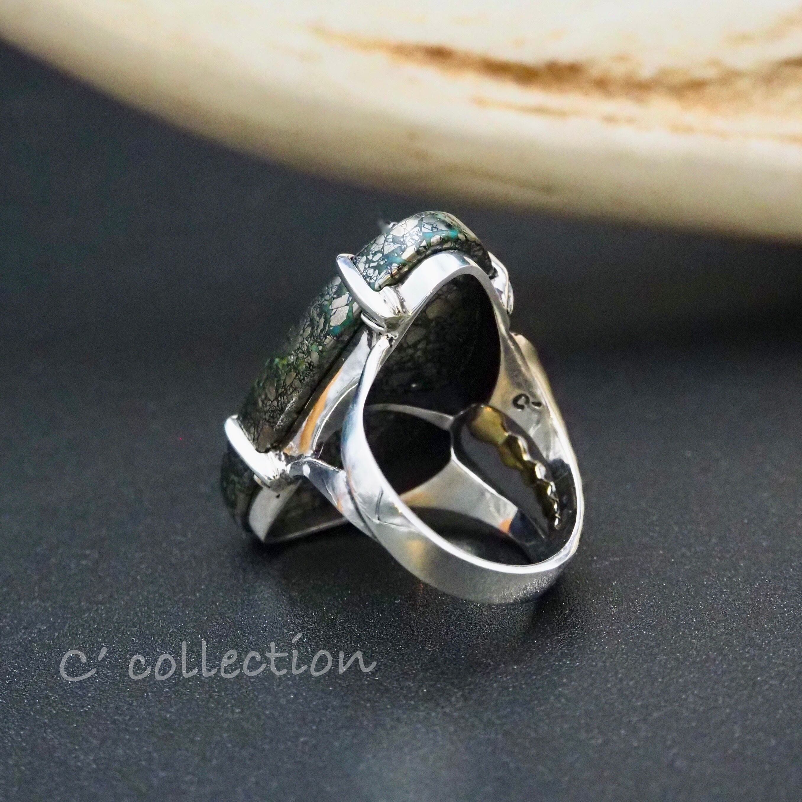 CR-12 Silver Ring with Nacozari Turquoise 号 一点物 シルバーリング ハンドメイドアクセサリー