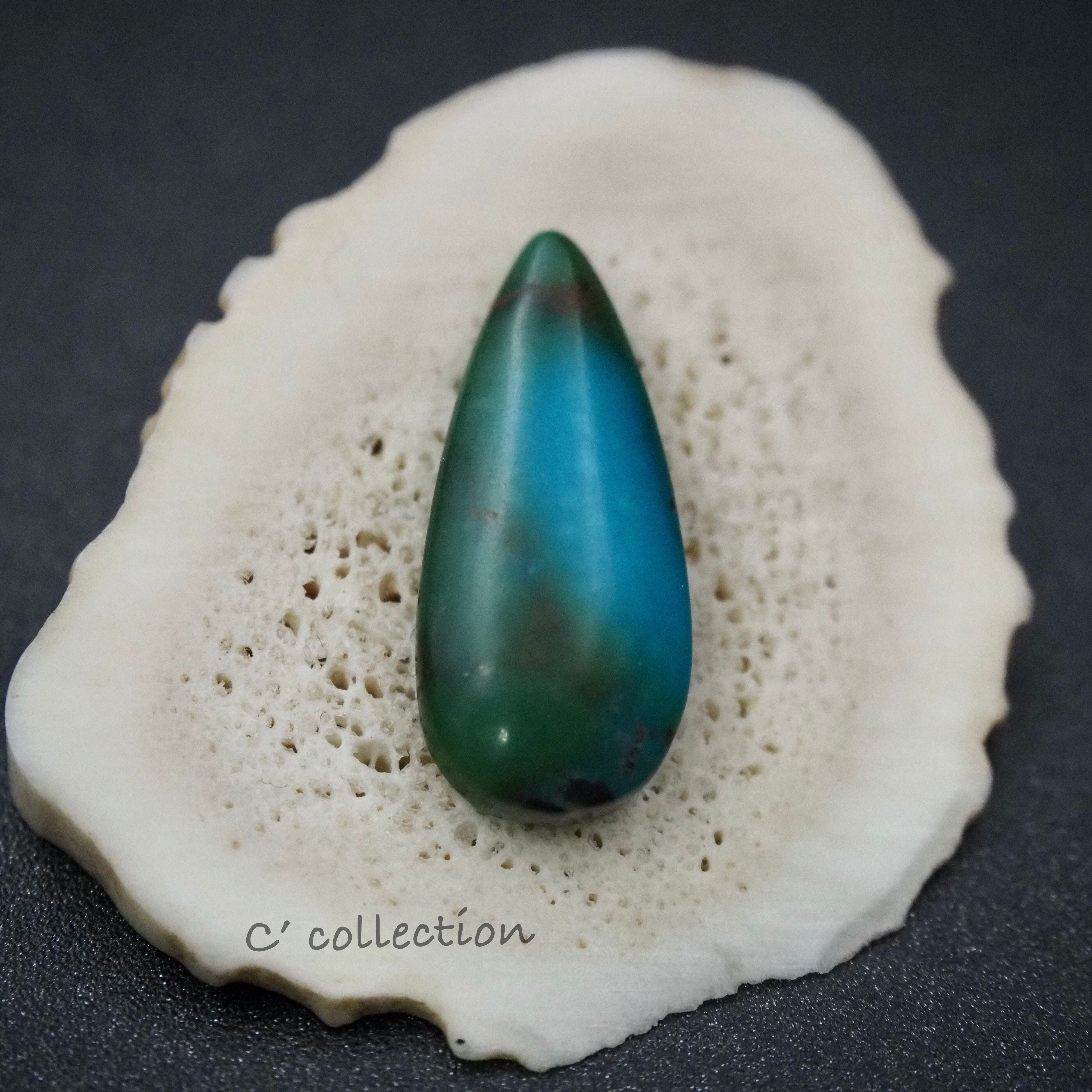 ブルーとグリーンが混じり合ったガラス質のルース。ナチュラル、スタビ不明.