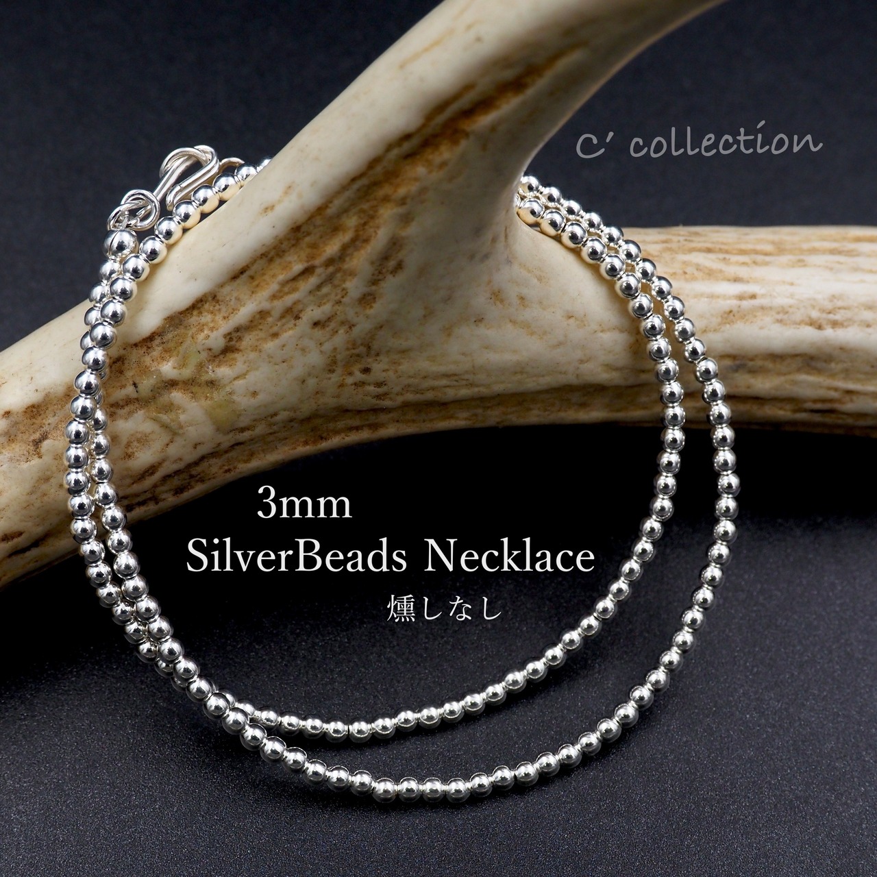 ナバホパール シルバービーズネックレス 3mm 燻しなし 40cm~ ハンドメイドアクセサリー