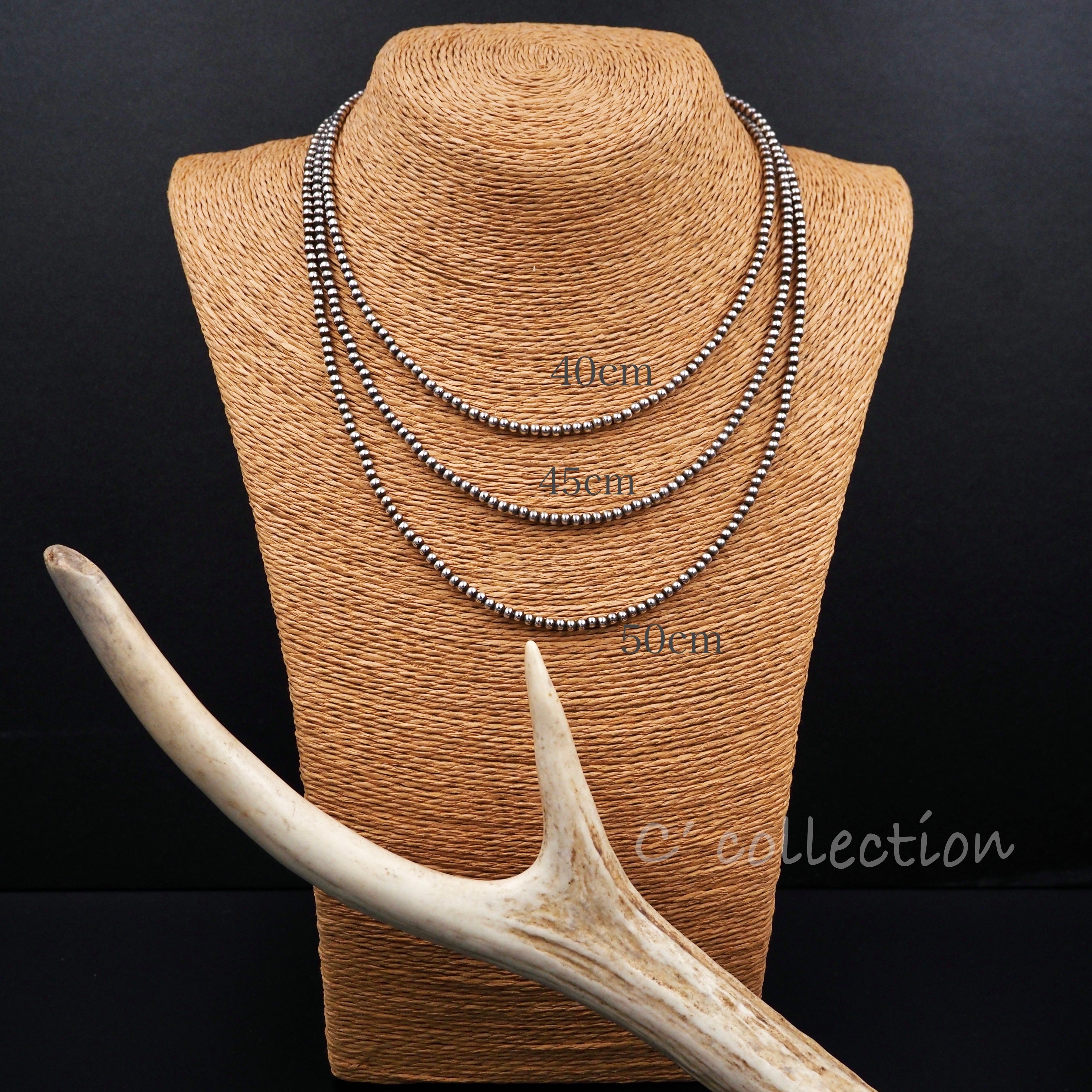 受注制作 ナバホパール シルバービーズネックレス 3mm 燻しあり ハンドメイドアクセサリー