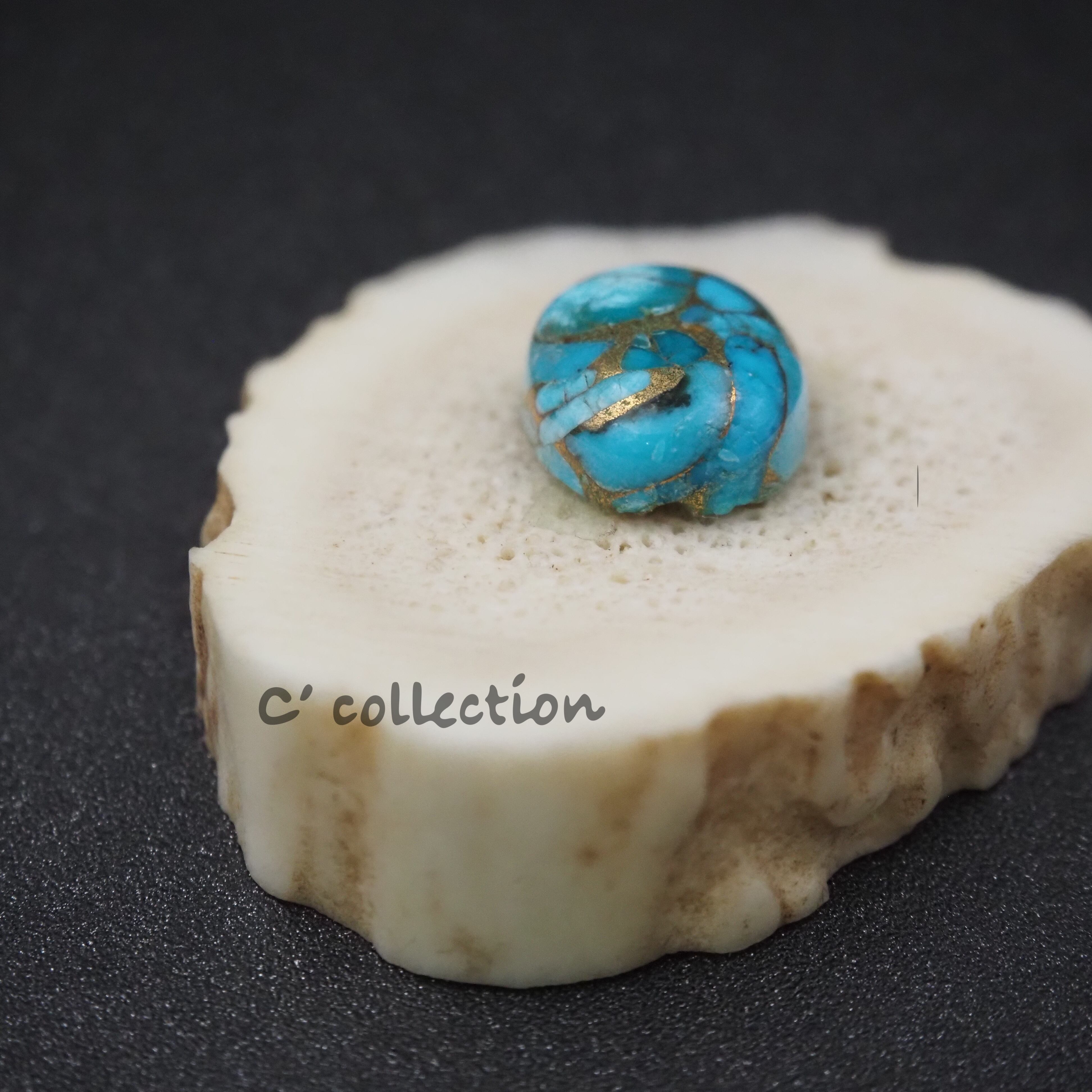 天然ターコイズのかけらと銅(カッパー)を圧着して作製されたコンポジットストーン(複合石)。