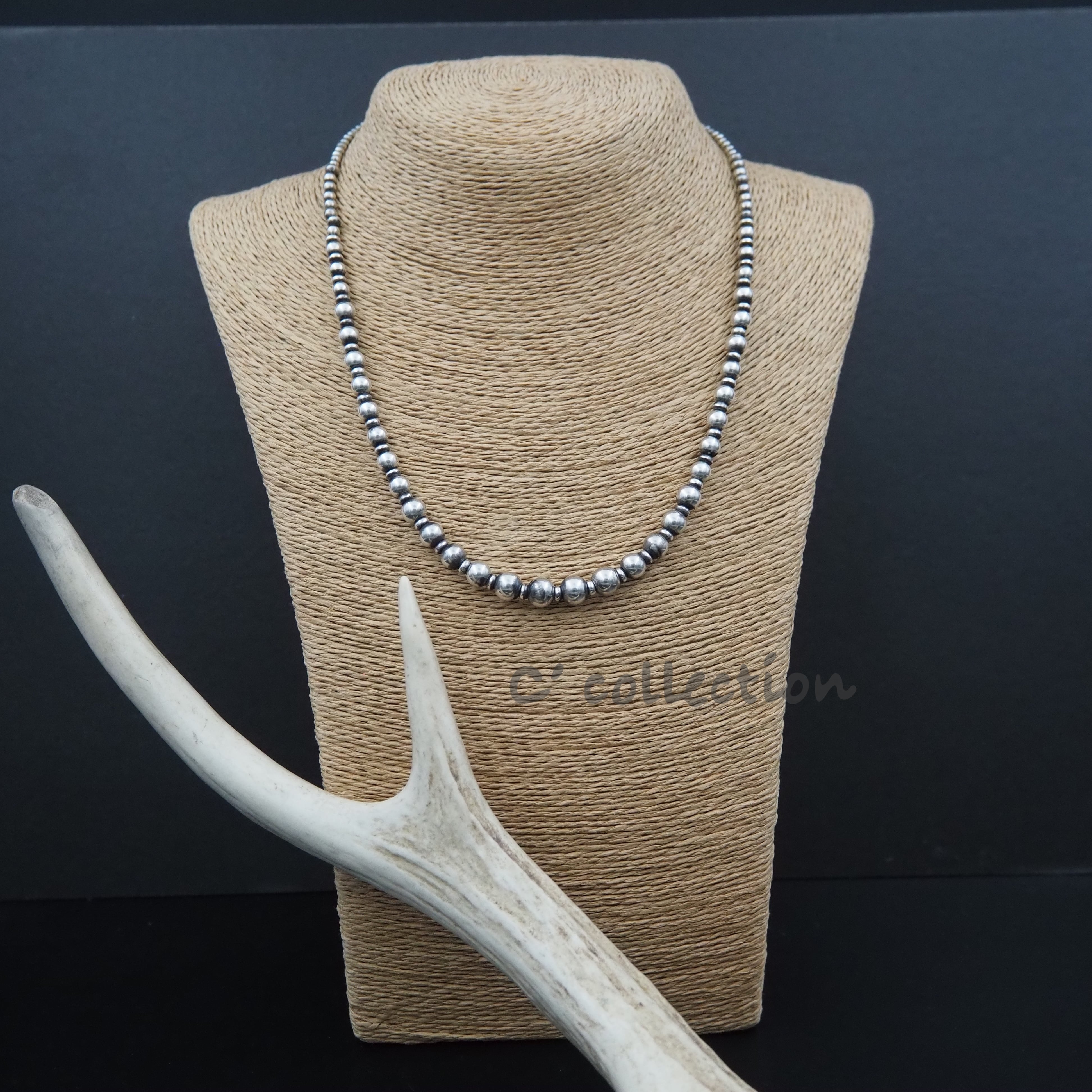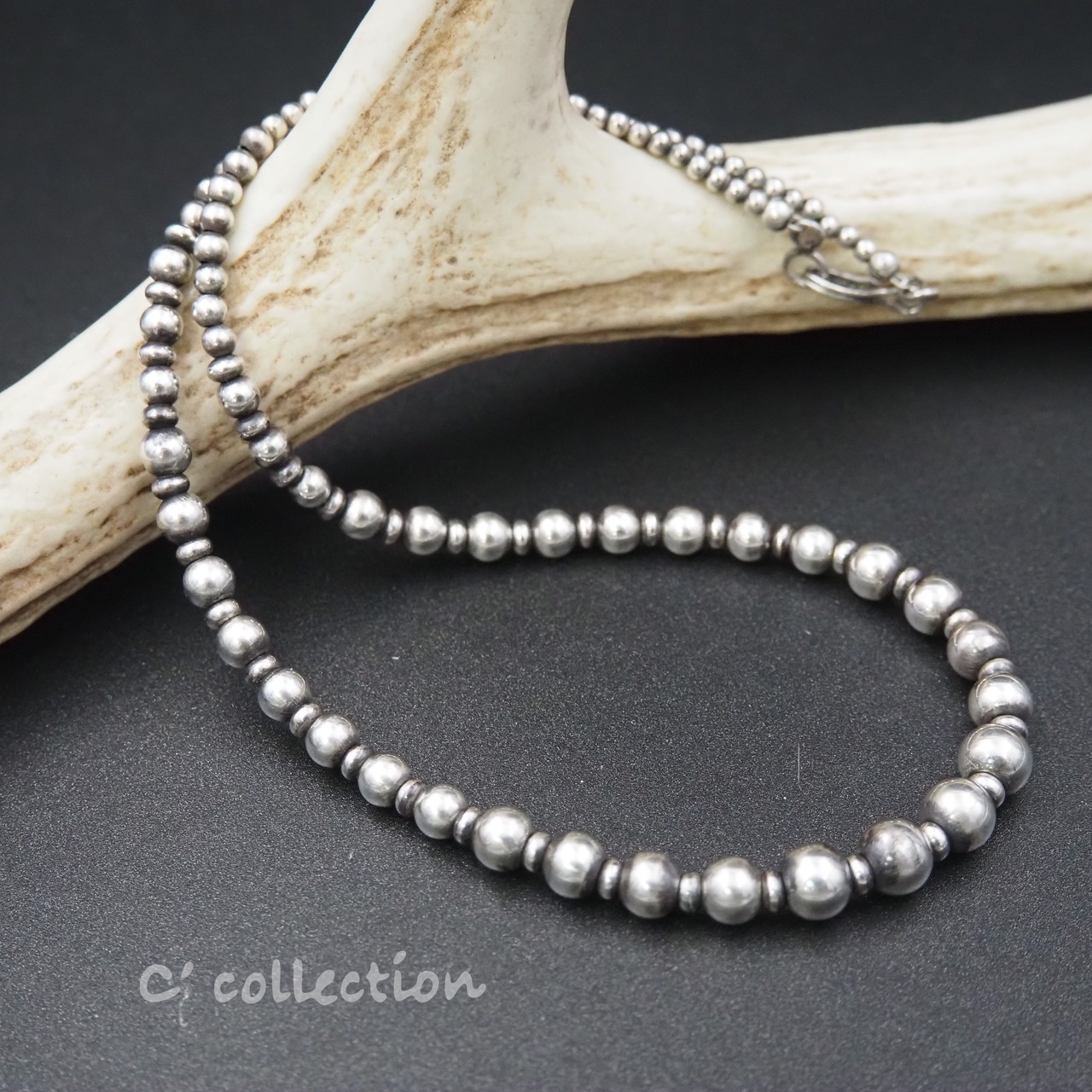 C2N-50 ナバホパール シルバービーズネックレス 50cm ラウンド グラデーション ハンドメイド