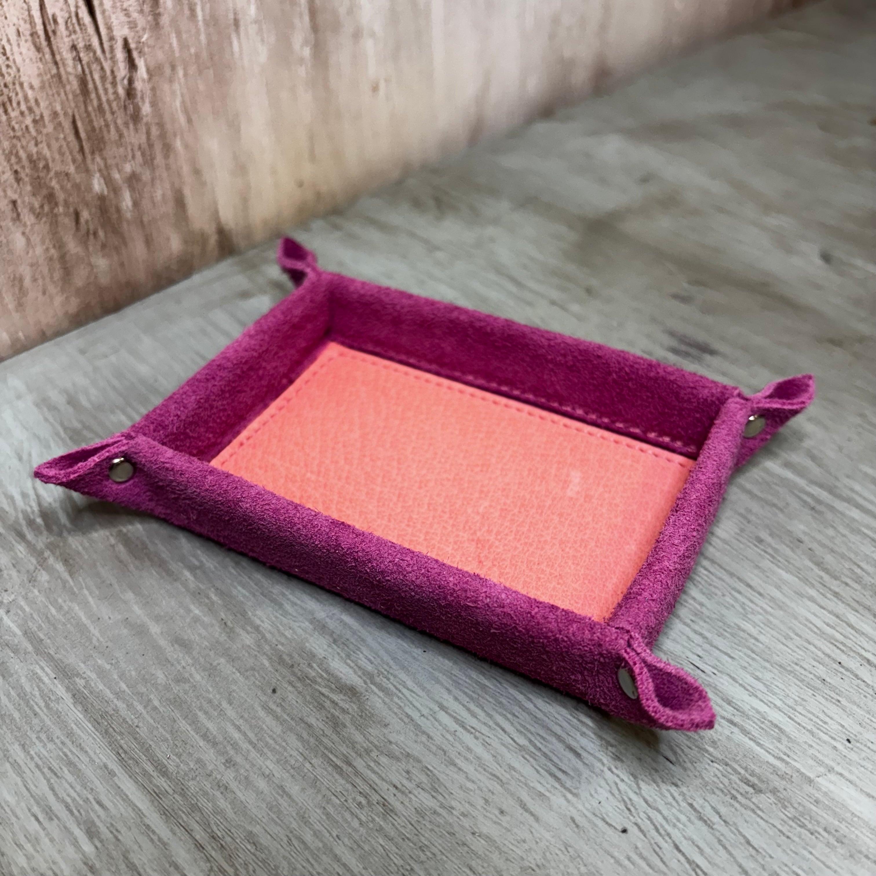制作終了SALE 本革カードトレイ スエード & ベロア ピンク 名刺やショップカード 小物入れに 多用途トレイ