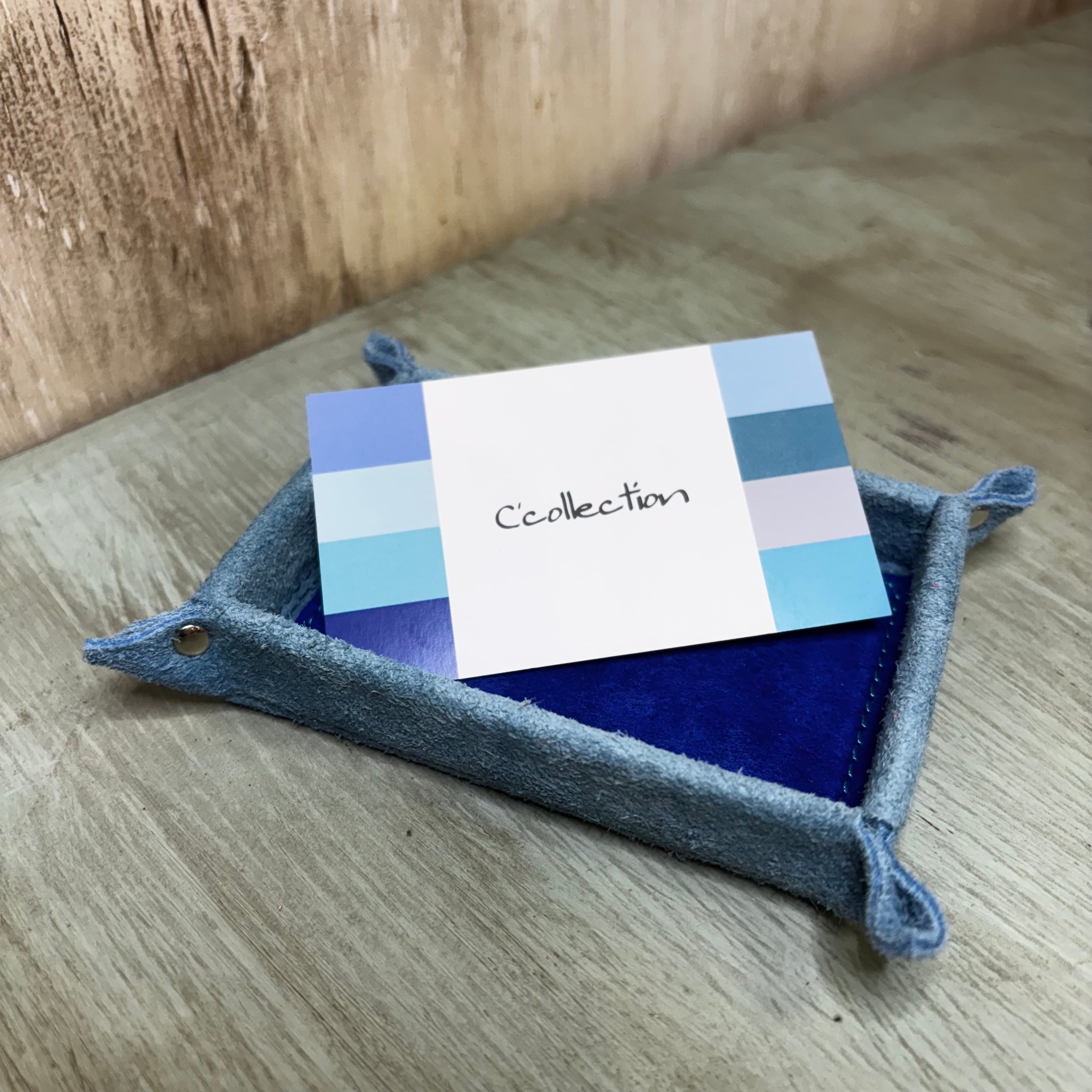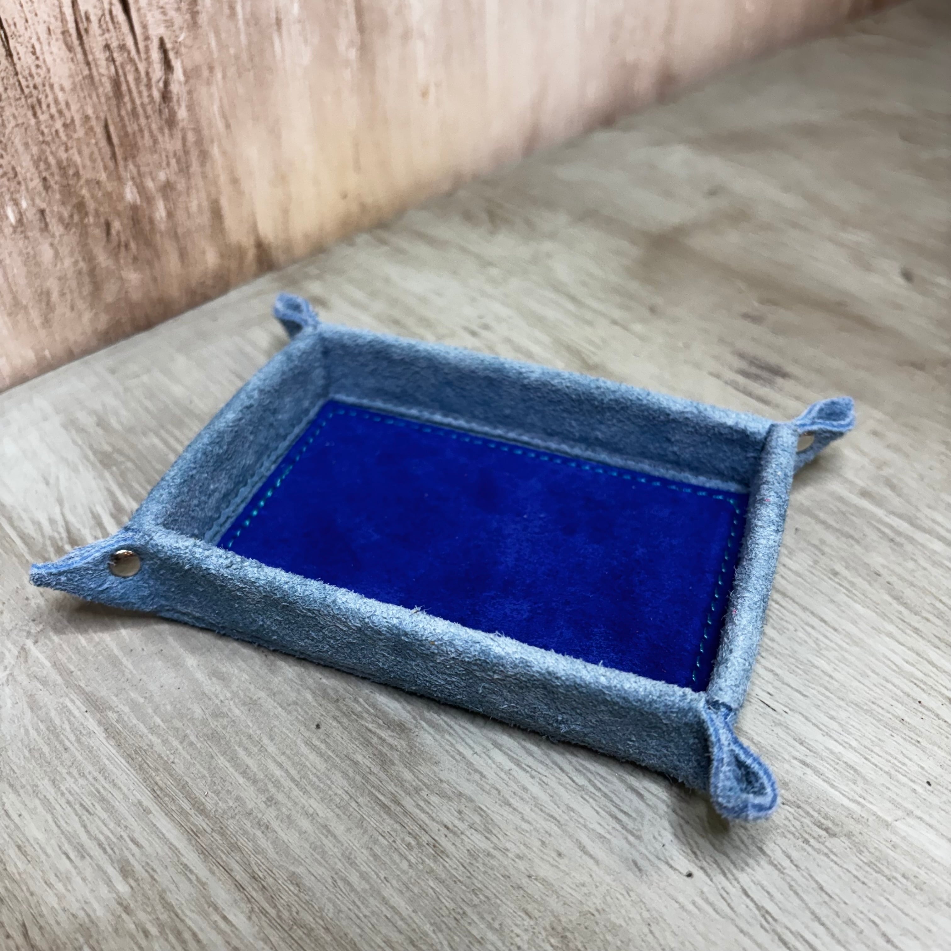制作終了SALE 本革カードトレイ スエード & ベロア ブルー 名刺やショップカード 小物入れに 多用途トレイ