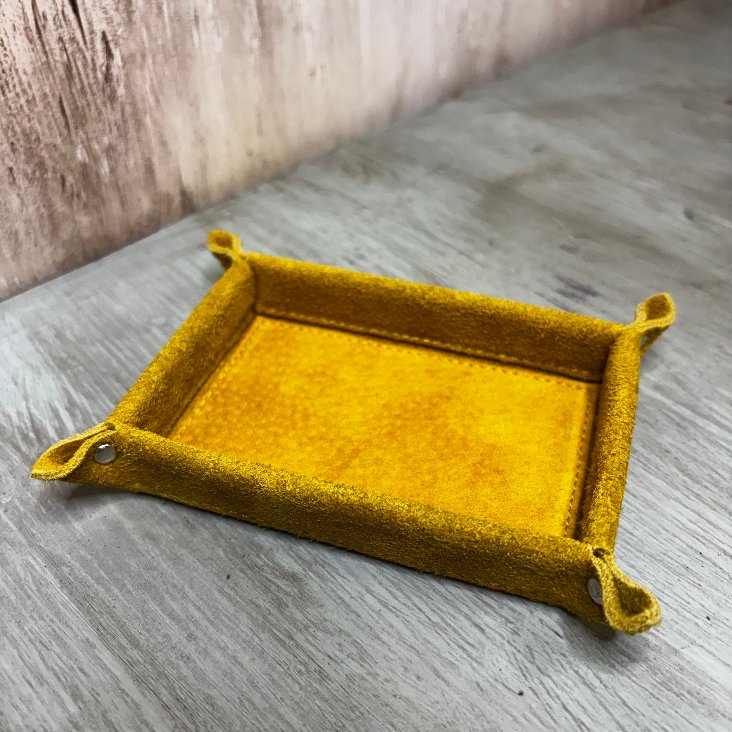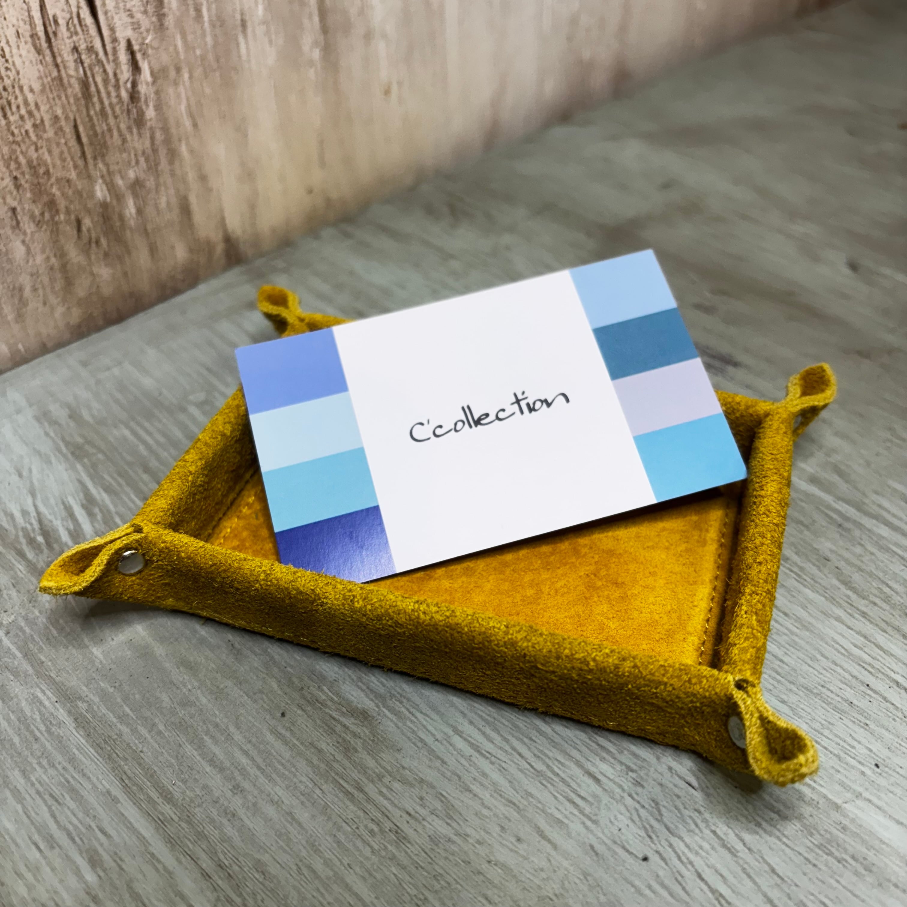 制作終了SALE 本革カードトレイ スエード & ベロア イエロー 名刺やショップカード 小物入れに 多用途トレイ