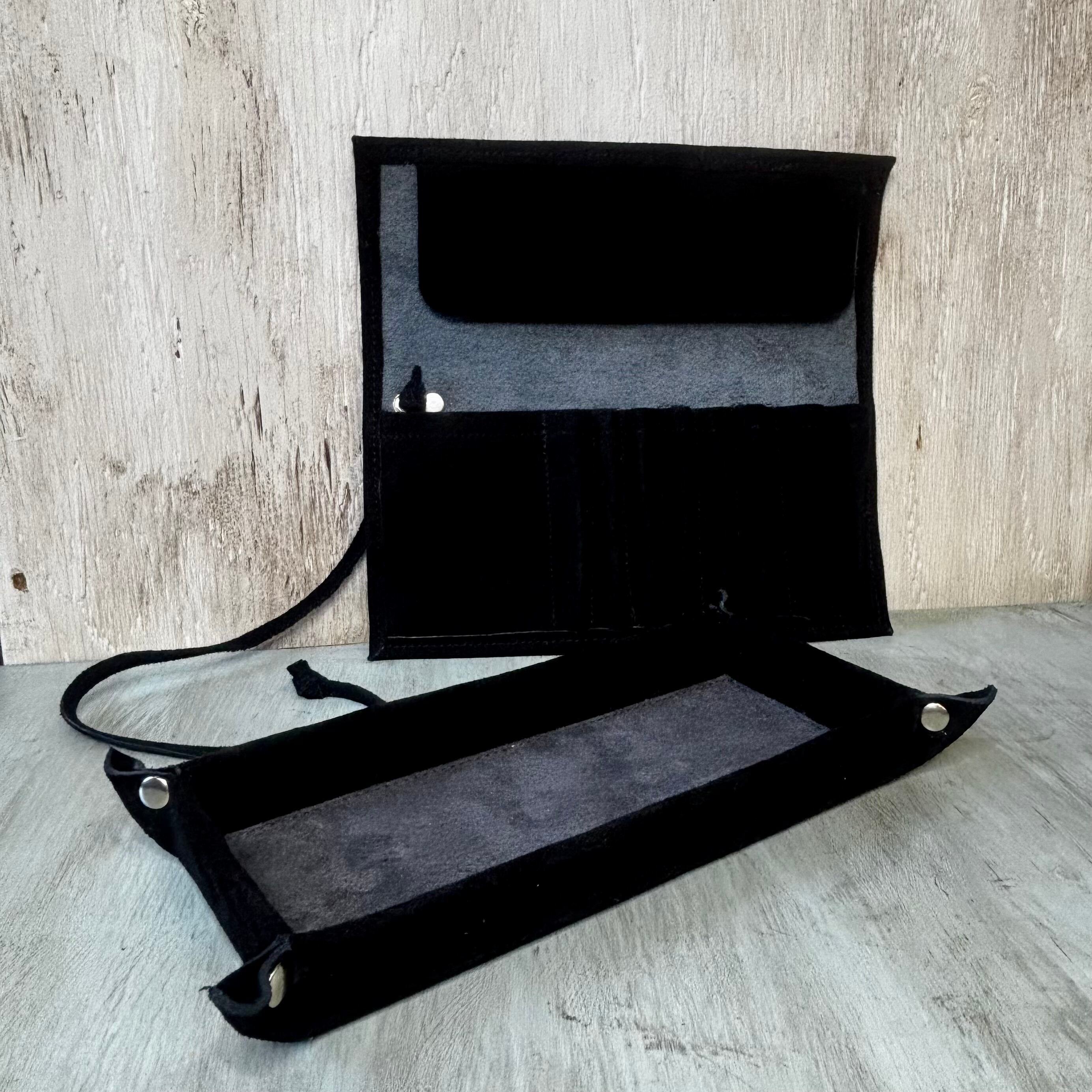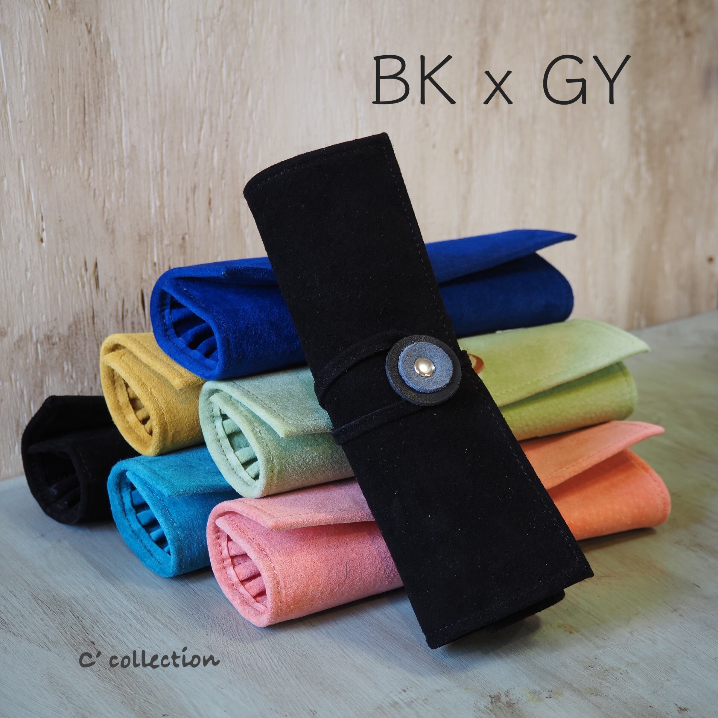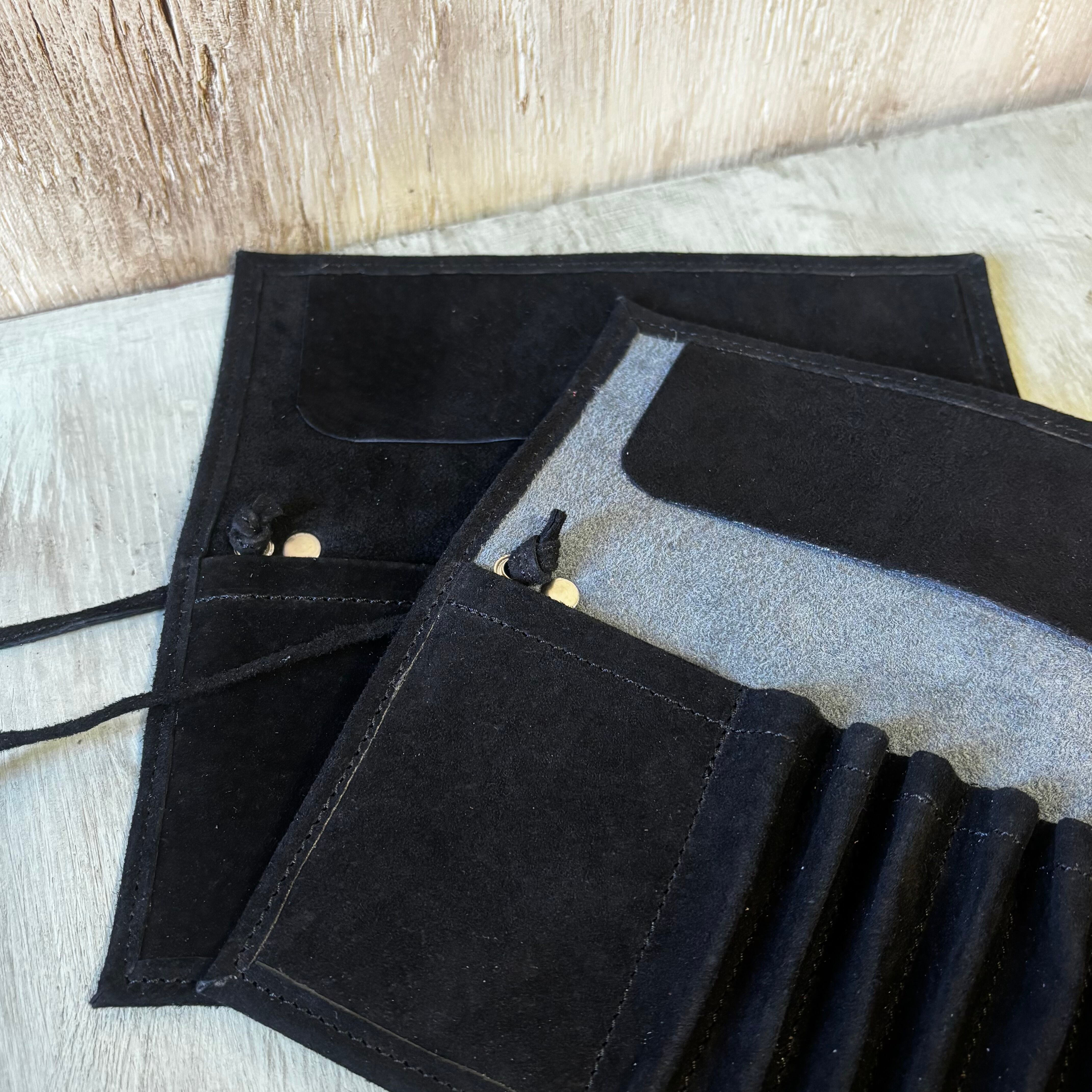 PC-2 本革ロールアップペンケース BK x GY スエード & ベロア コスメブラシケース ブラック グレイ