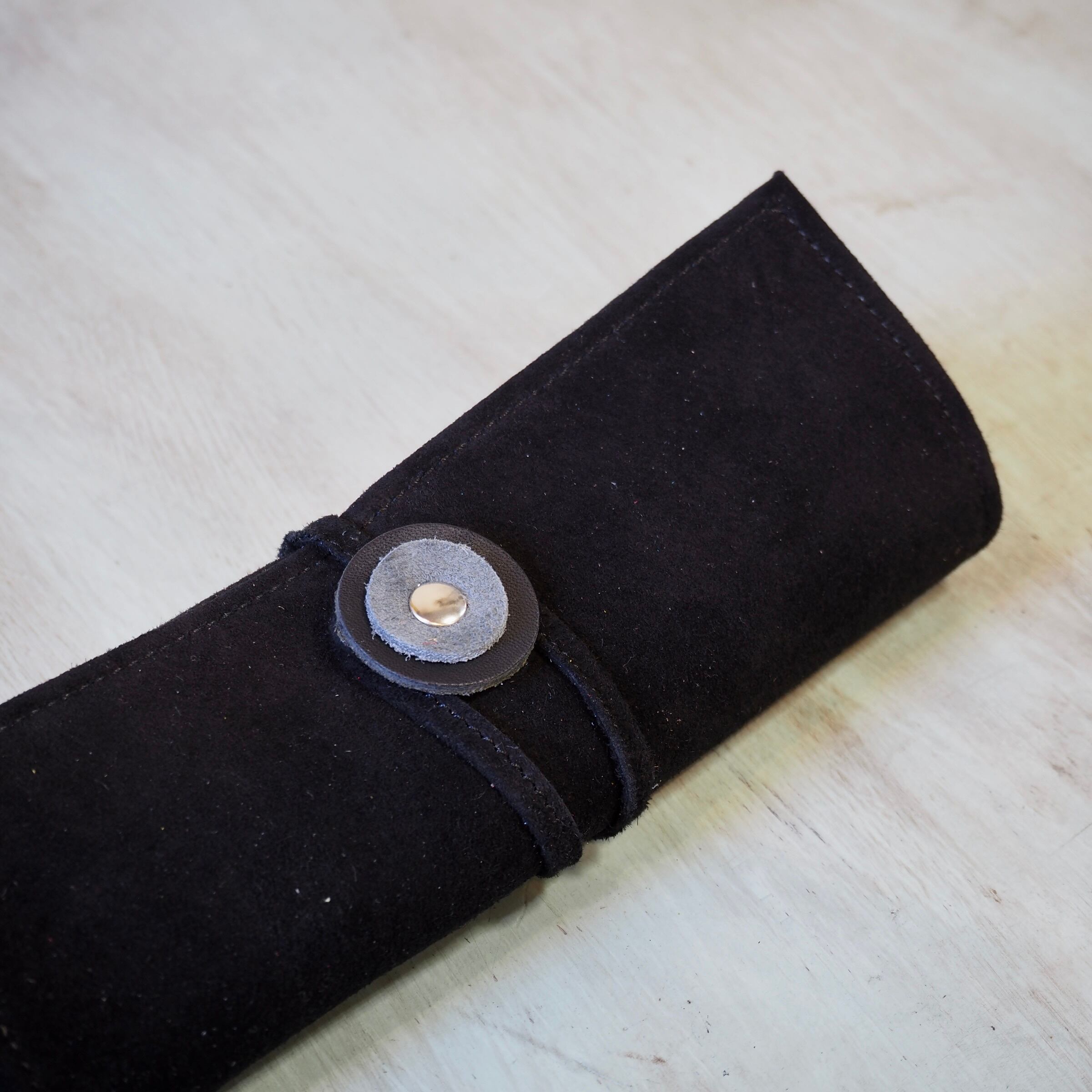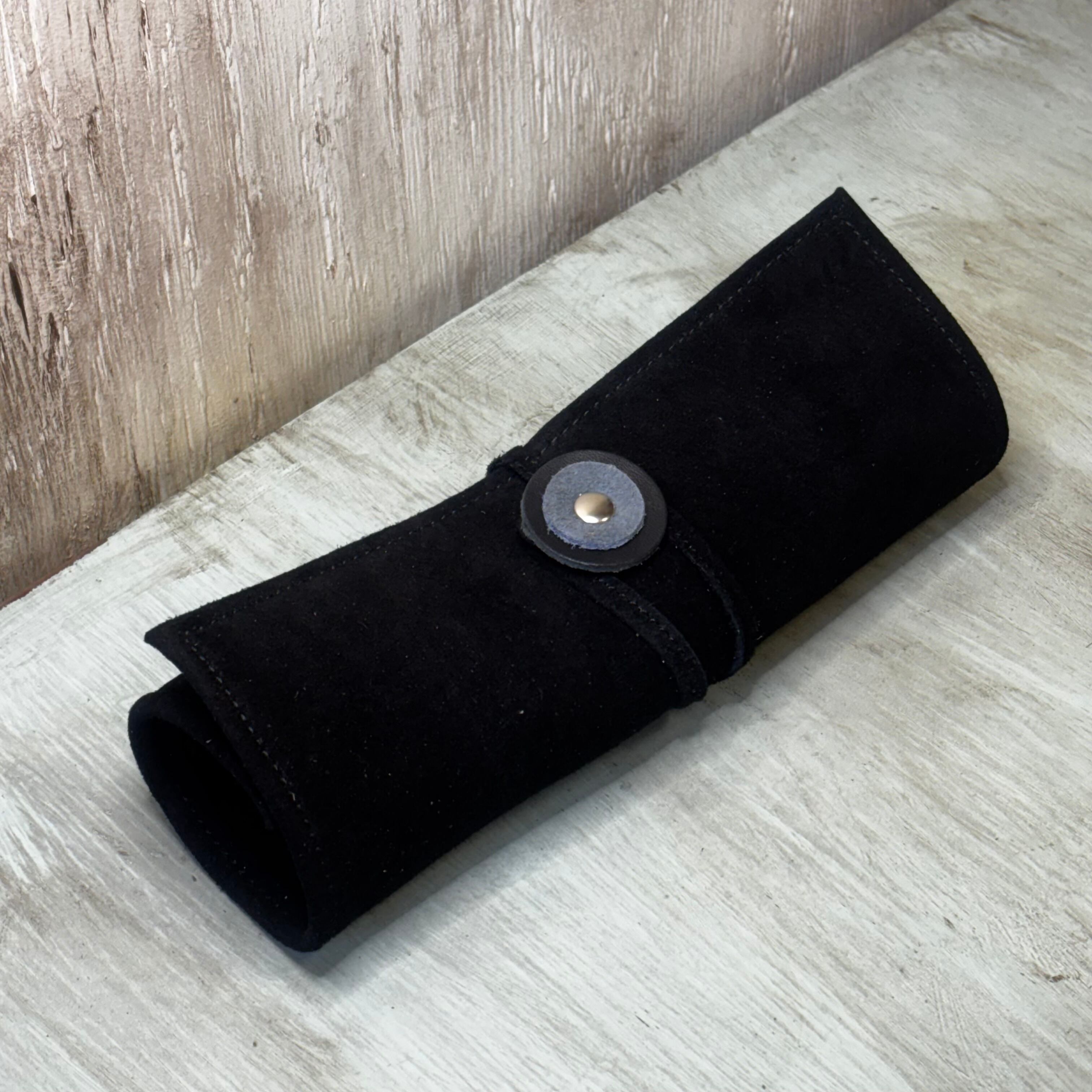 艶やかなスウェードと柔らかな牛革ベロアを使用したロールアップペンケースです。