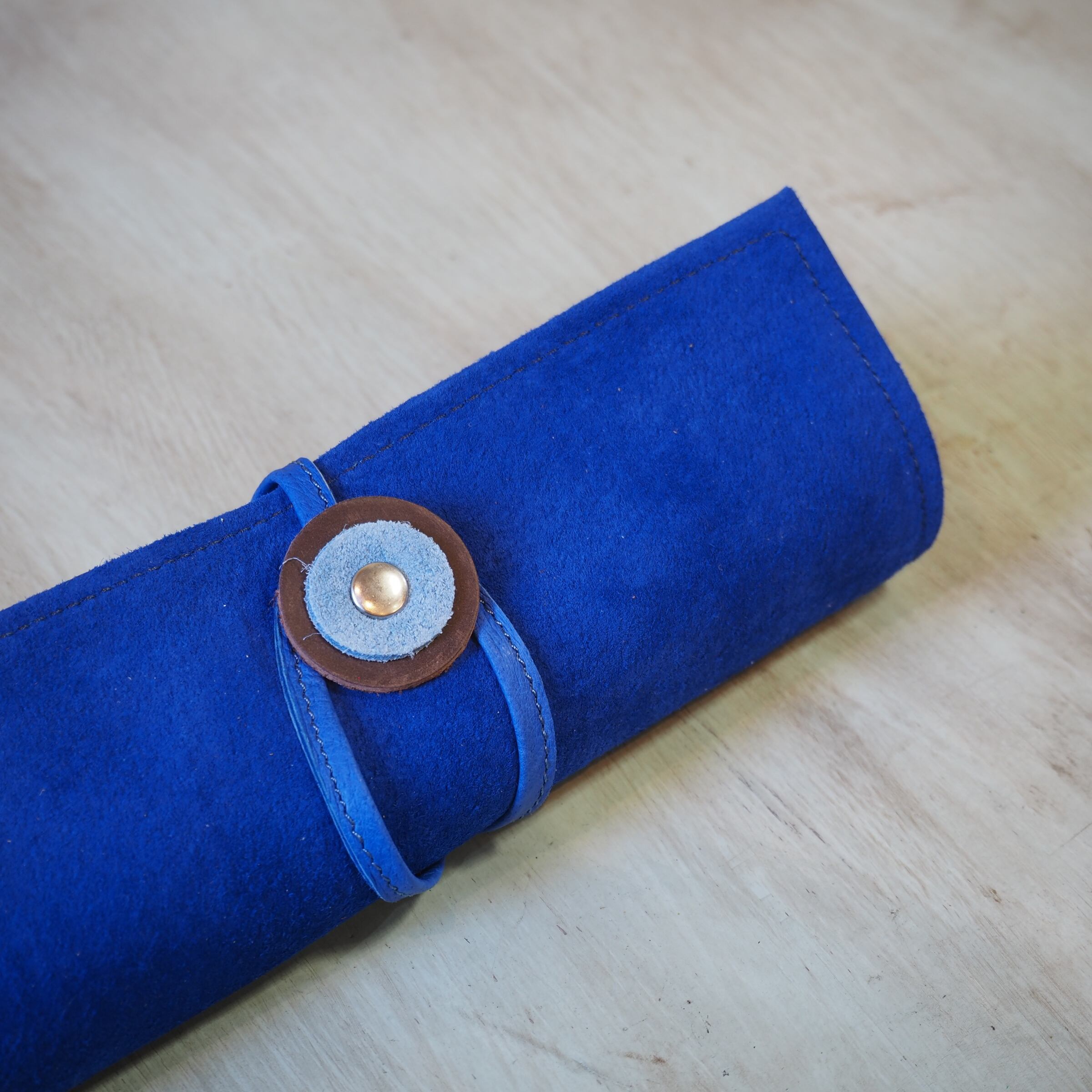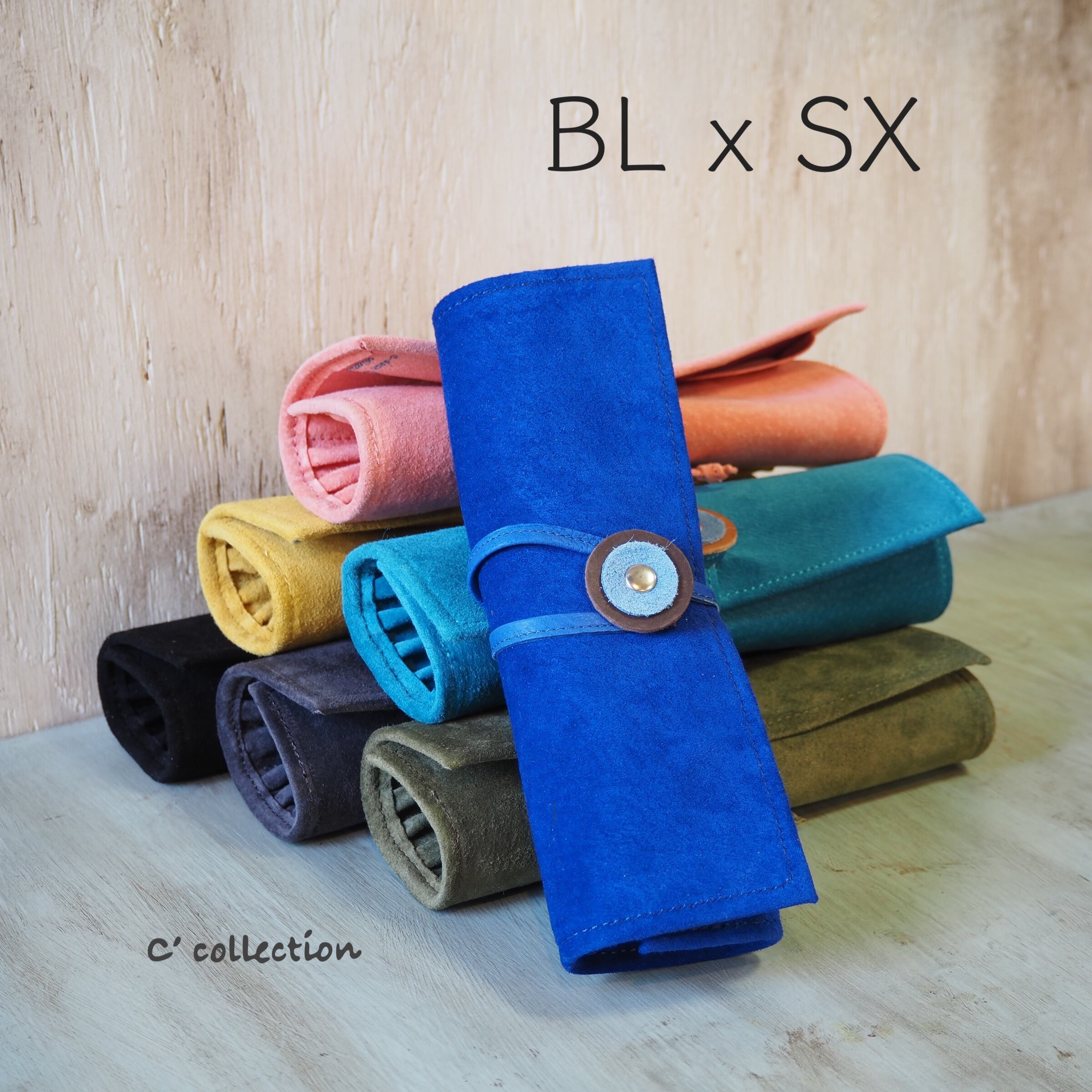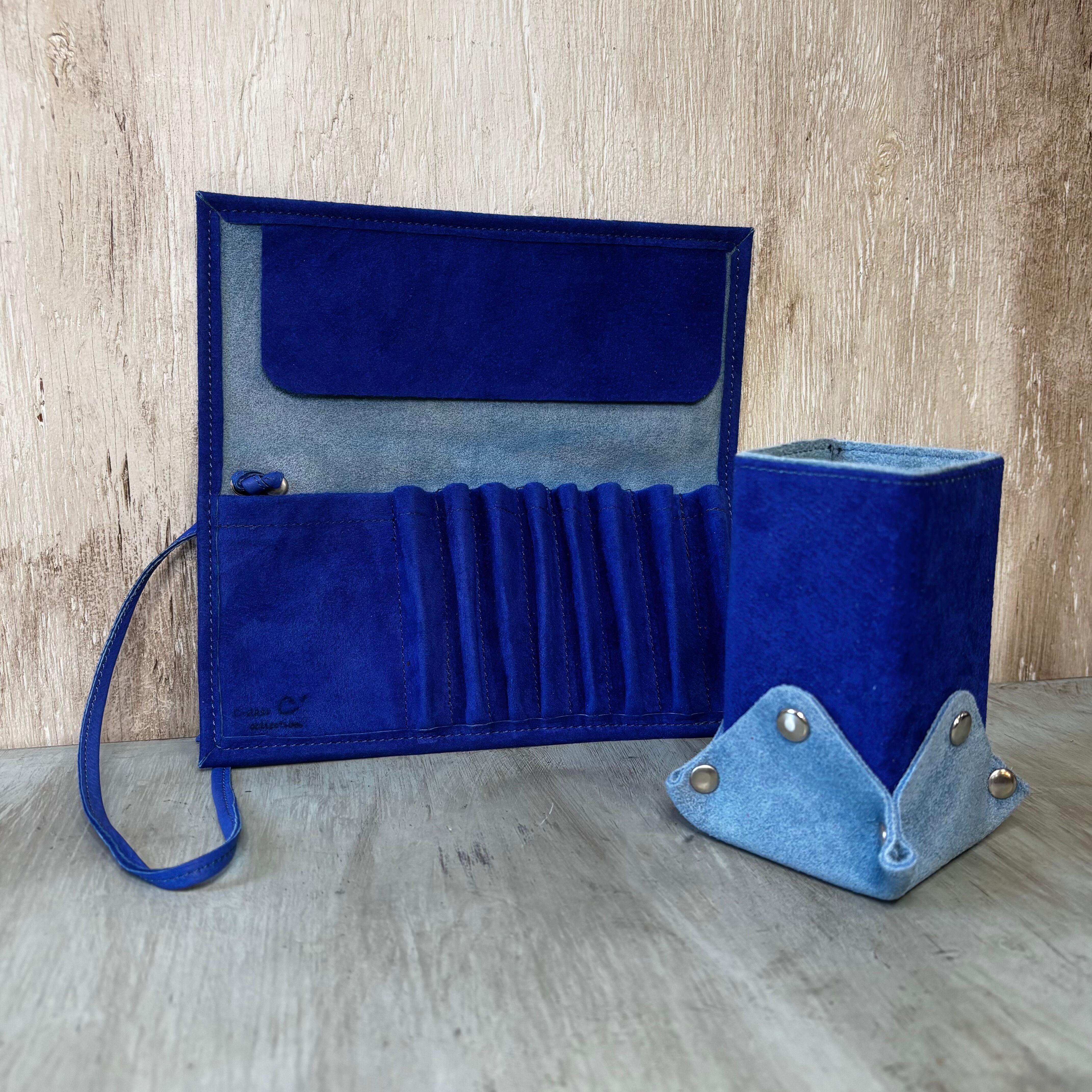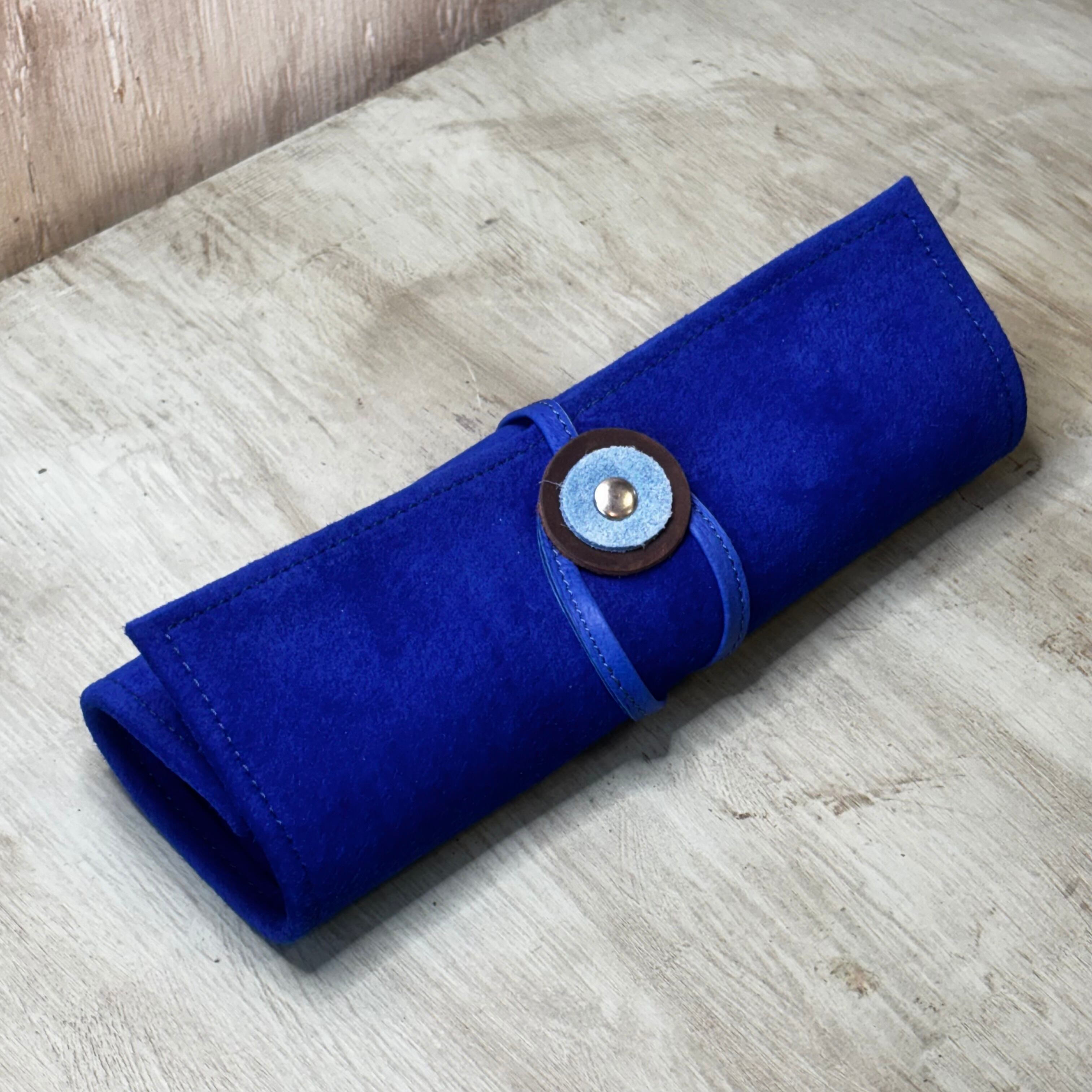 PC-10 本革ロールアップペンケース BLxSX スエード & ベロア コスメブラシケース ブルー