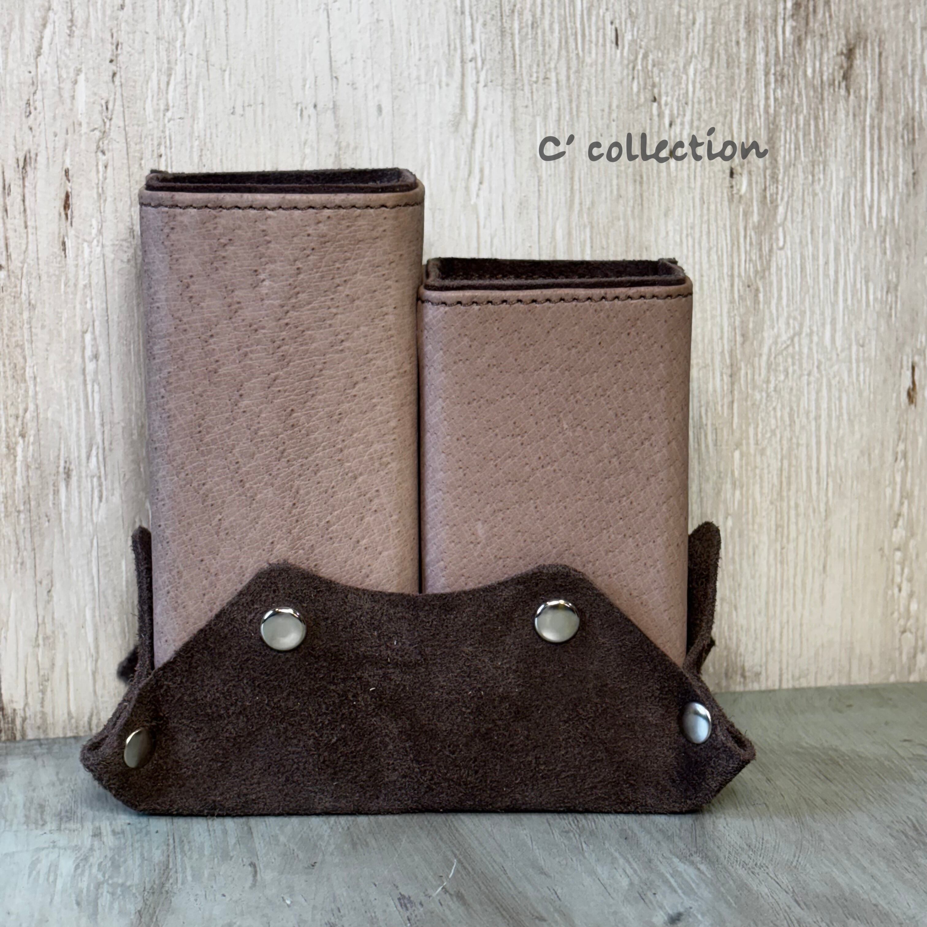 MSW-12 本革スエード Wメガネスタンド CBRxCBR ペンスタンド レザーワーク ハンドメイド チャコールブラウン