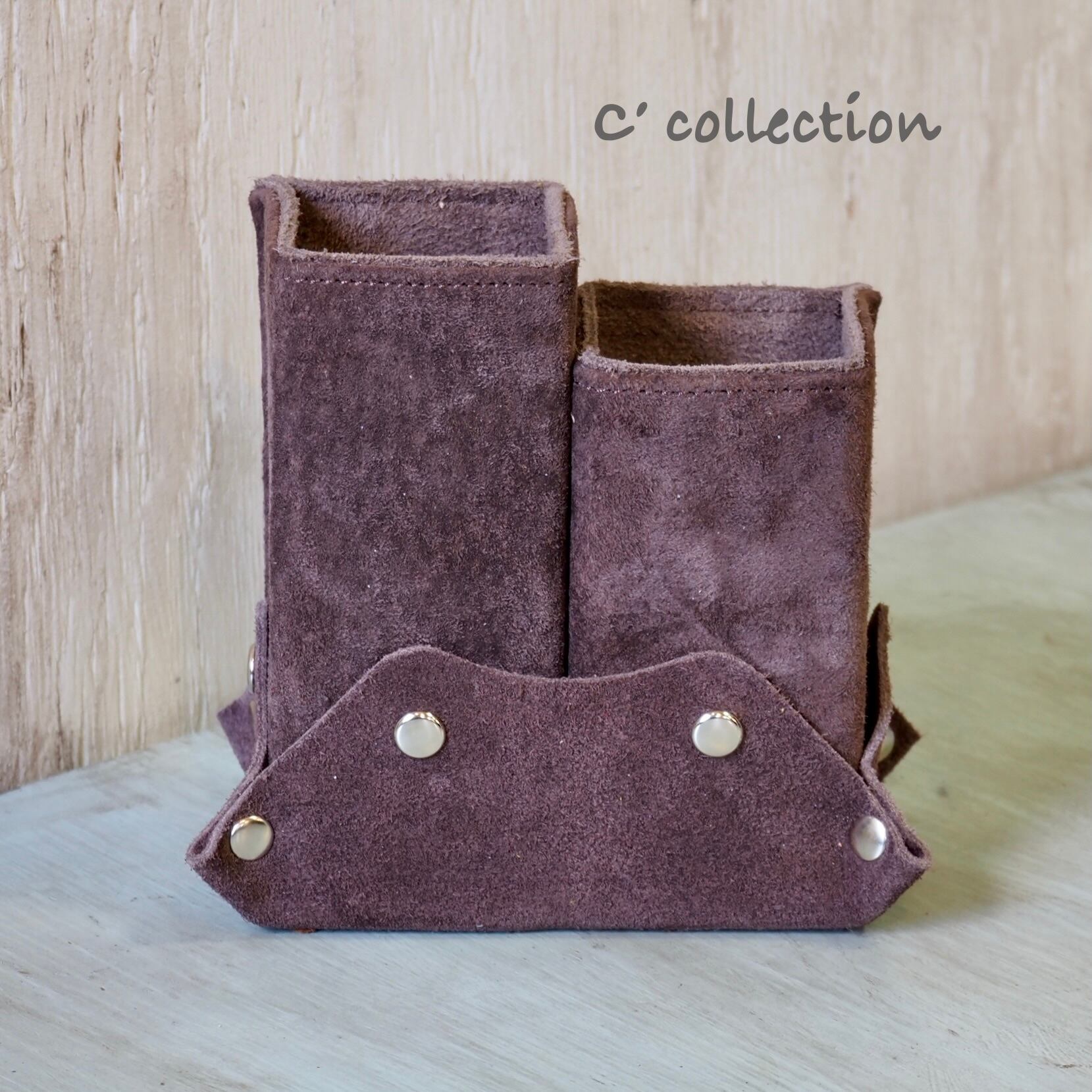MSW-15 本革スエード Wメガネスタンド DBRxDBR ペンスタンド レザーワーク ハンドメイド ダークブラウン