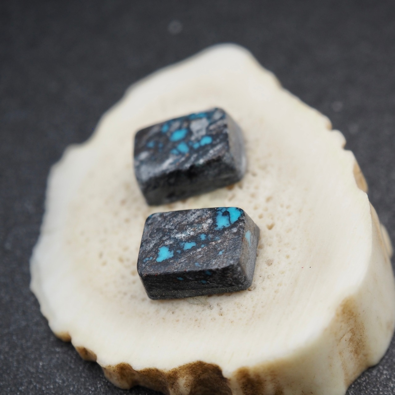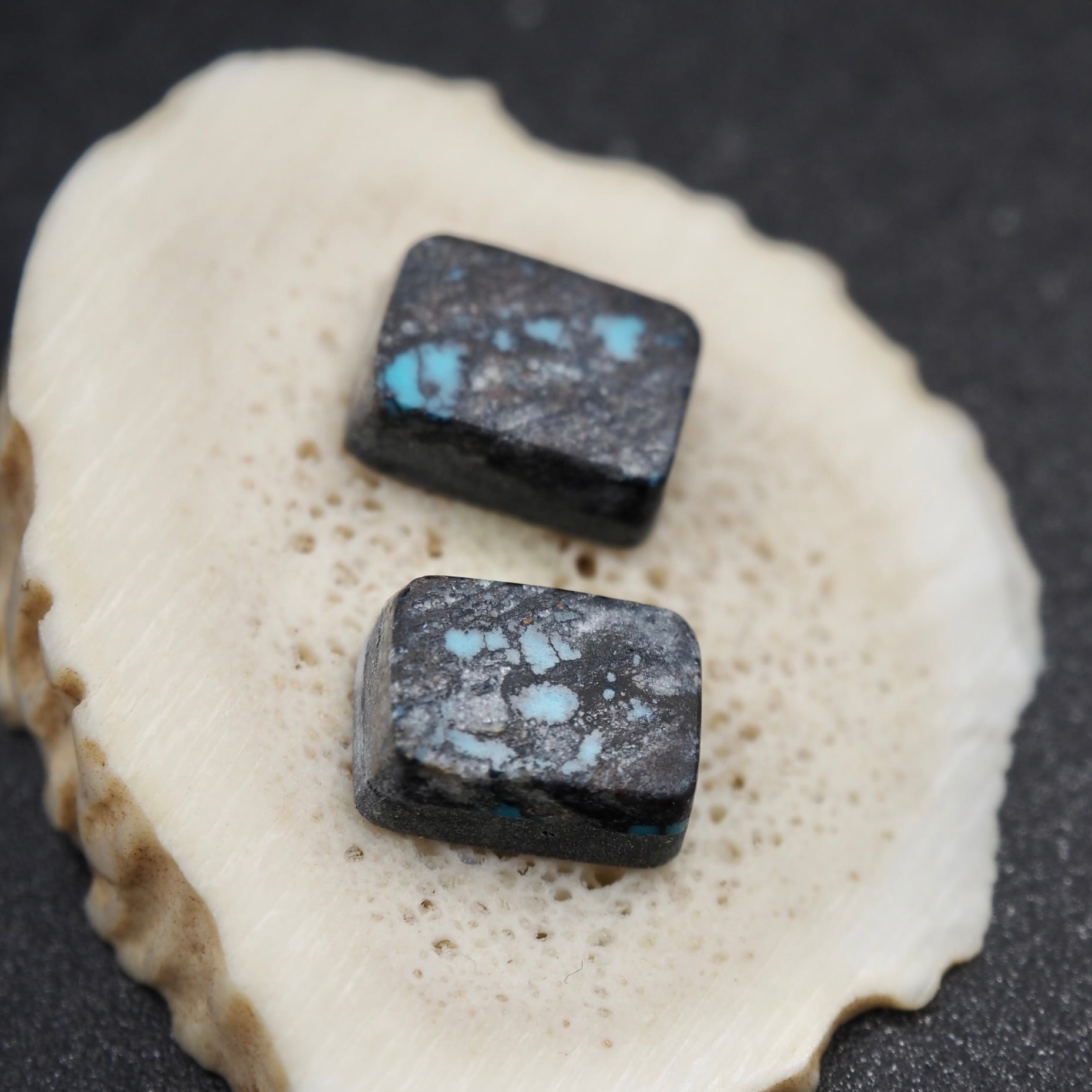 ブラックの母岩にくっきりと小さなブルーが浮かびます。スクエアなペアルース。