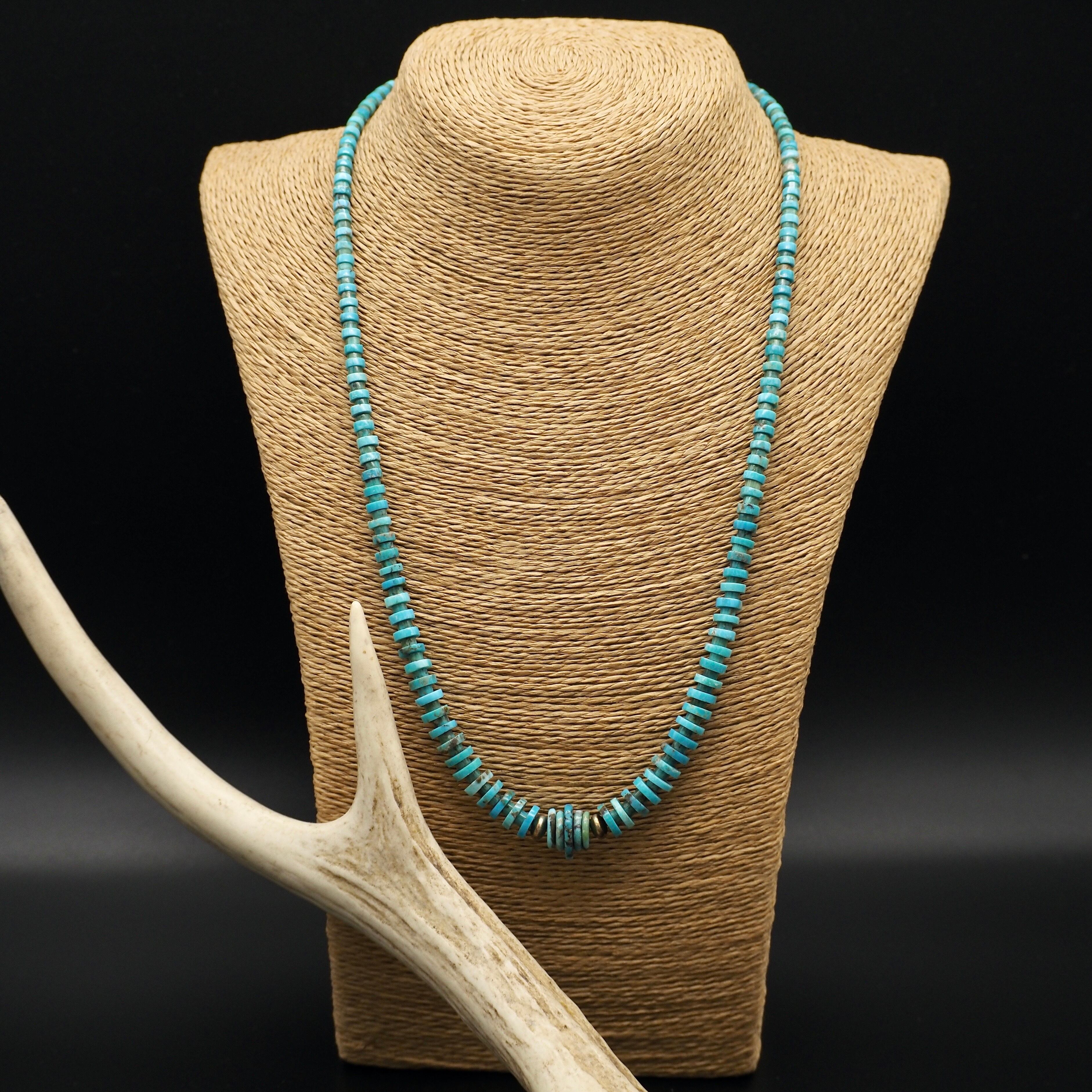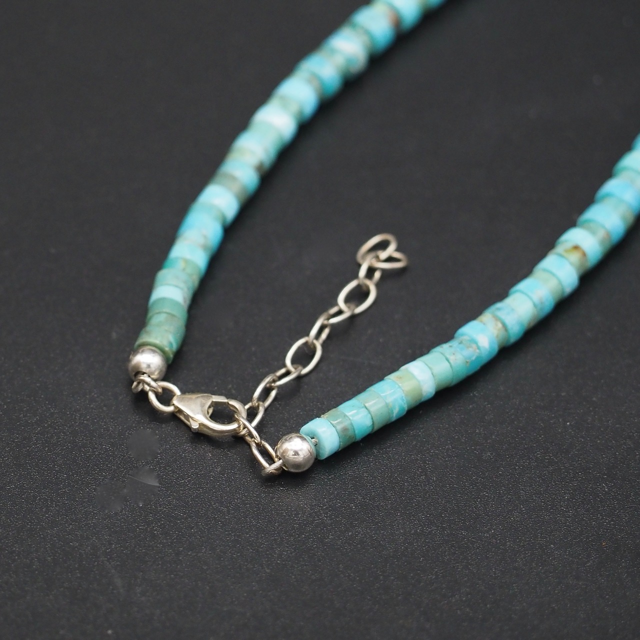 CNK-10 天然ターコイズ グラデーションネックレス ロンデル 63cm ハンドメイド トルコ石 シルバービーズ