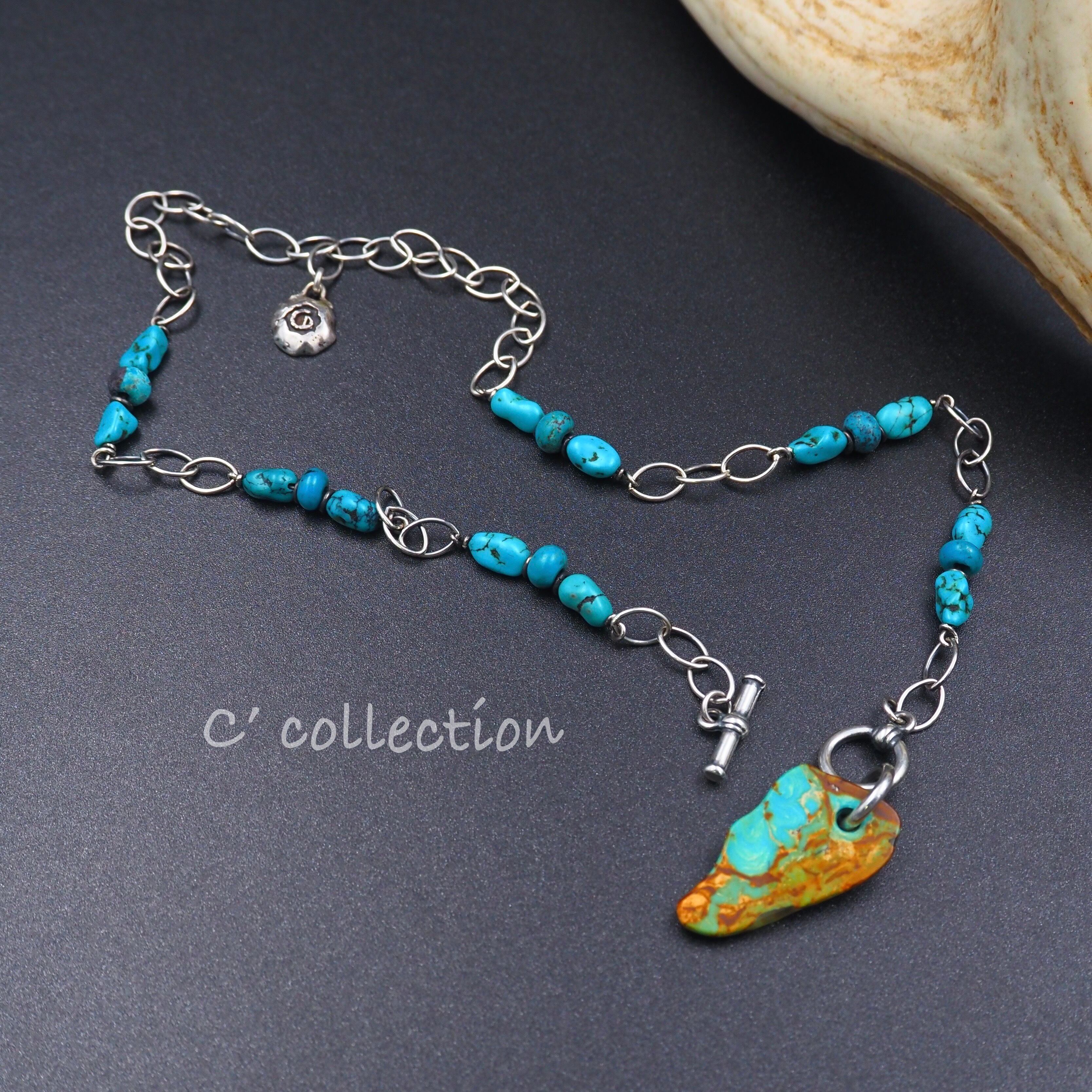 CNK-83 Turquoise & Silver Handmade Chain Necklace ターコイズ ハンドメイドチェーン ネックレス